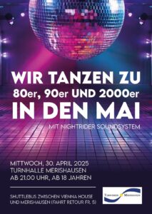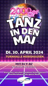 Unsere alljährliche „Tanz in den Mai“-Party findet wieder statt. Dieses Jahr unter dem neuen Motto 2000’s.