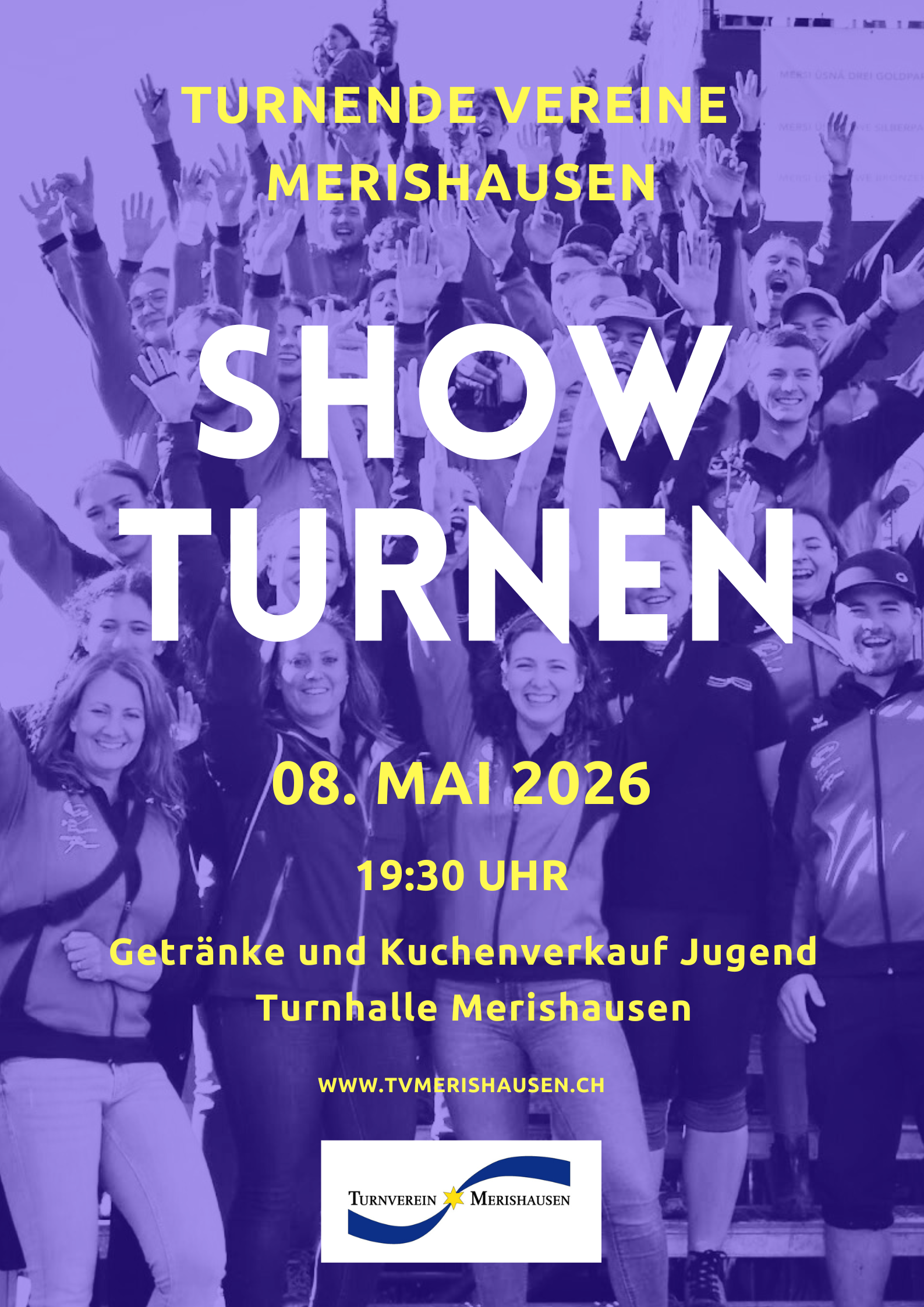 Wir freuen uns euf euren Besuch am Showturnen vom 8. Mai 26 in der Turnhalle Merishausen.